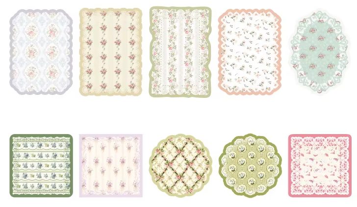 Stílus: vintage, csipkés minták, finom textúrák, amelyek romantikus, nosztalgikus projektekhez illenek.