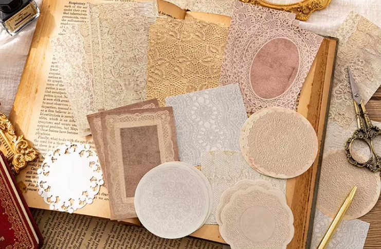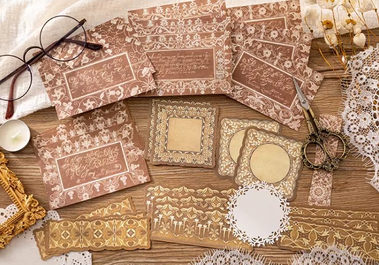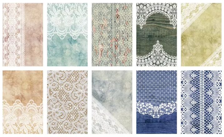 • Stílus: vintage, csipkés minták, finom textúrák, amelyek romantikus, nosztalgikus projektekhez illenek.