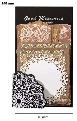 A csomag 30 darab dekoratív csipkés vintage lapot tartalmaz.
