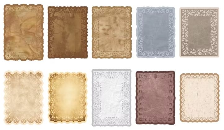 • Stílus: vintage, csipkés minták, finom textúrák, amelyek romantikus, nosztalgikus projektekhez ideálisak.