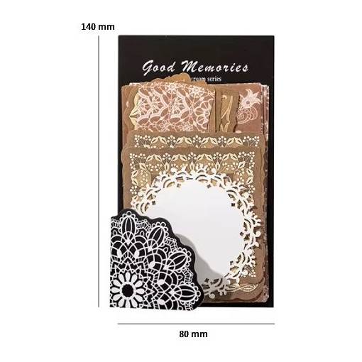 Mélyedj bele a vintage scrapbook varázslatos világába ezzel a 30 darab csipkés dekoratív papírból álló készlettel! Minden lap gondosan megtervezett, hogy romantikus hangulatot csempésszen a projektjeidbe — ideális háttérnek, kivágásnak vagy dísznek naplókhoz, albumban, képeslapokhoz vagy bármilyen kreatív munkához.