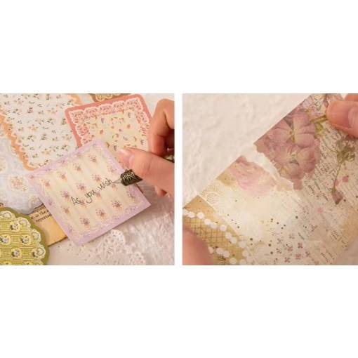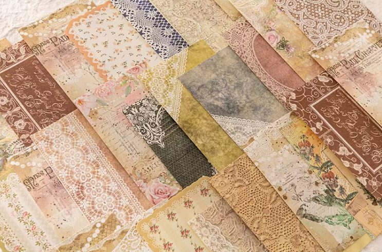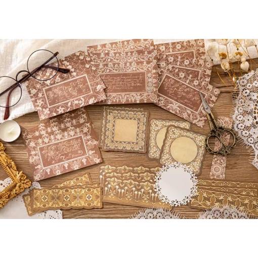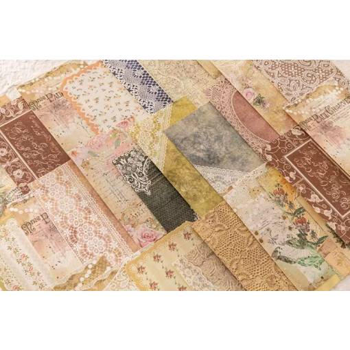 Mélyedj bele a vintage scrapbook varázslatos világába ezzel a 30 darab csipkés dekoratív papírból álló készlettel! Minden lap gondosan megtervezett, hogy romantikus hangulatot csempésszen a projektjeidbe — ideális háttérnek, kivágásnak vagy dísznek naplókhoz, albumban, képeslapokhoz vagy bármilyen kreatív munkához.