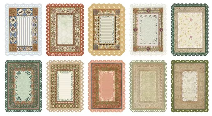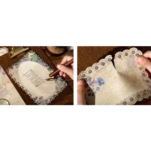 Éleszdd fel papírprojektjeidet elegáns vintage stílusban ezzel a 10 nagy csipkés dekoratív papírból álló készlettel. Minden lap gondosan megtervezett, és rusztikus, romantikus megjelenést kínál, ideális naplókhoz, albumban, bullet journalhoz, képeslapokhoz és egyéb kreatív alkotásokhoz.