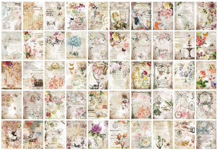 Hozza el a virágok eleganciáját projektjeibe ezzel a 100 díszes papírt tartalmazó csomaggal, finom vintage mintával. Ezek a lapok kényelmesen írhatóak, ideális háttérként a naplókhoz, scrapbookozáshoz, dekorációkhoz vagy üdvözlőkártyák készítéséhez.