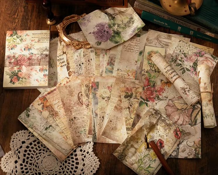 Hozza el a virágok eleganciáját projektjeibe ezzel a 100 díszes papírt tartalmazó csomaggal, finom vintage mintával. Ezek a lapok kényelmesen írhatóak, ideális háttérként a naplókhoz, scrapbookozáshoz, dekorációkhoz vagy üdvözlőkártyák készítéséhez.
