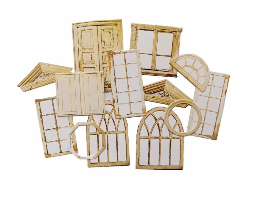 Scrapbooking dekoratív papír lemez - Vintage sima színű ablakok, 10 db