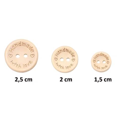 Anyag – természetes fa: A gombok természetes fából készültek festékek nélküli, finom textúrával és diszkrét khaki árnyalattal. Ez az anyag rusztikus, meleg és organikus megjelenést ad a projektjeinek.