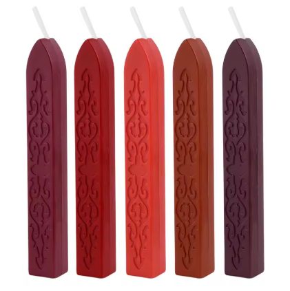 Ez a készlet 5 viaszrudat tartalmaz, amelyek ideálisak pecsételéshez pecsételő lenyomattal. Minden rúd könnyen olvad, és simán és fényesen bevonható, és megkeményedés után formás, szépen színezett pecsétet készít.