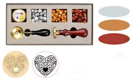 A gyönyörű dobozban található teljes készlet a pecsételéshez - a levehető fejű fém bélyegzőtől a viasz olvasztó kanálig, pecsétgyöngyökig és illatos gyertyákig. Ennek köszönhetően azonnal elkezdhetsz alkotni a kibontás után.