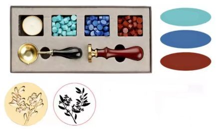 A gyönyörű dobozban található teljes készlet a pecsételéshez - a levehető fejű fém bélyegzőtől a viasz olvasztó kanálig, pecsétgyöngyökig és illatos gyertyákig. Ennek köszönhetően azonnal elkezdhetsz alkotni a kibontás után.