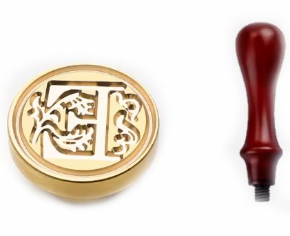 A csomag egy pecsétnyomót tartalmaz fa fogantyúval.
