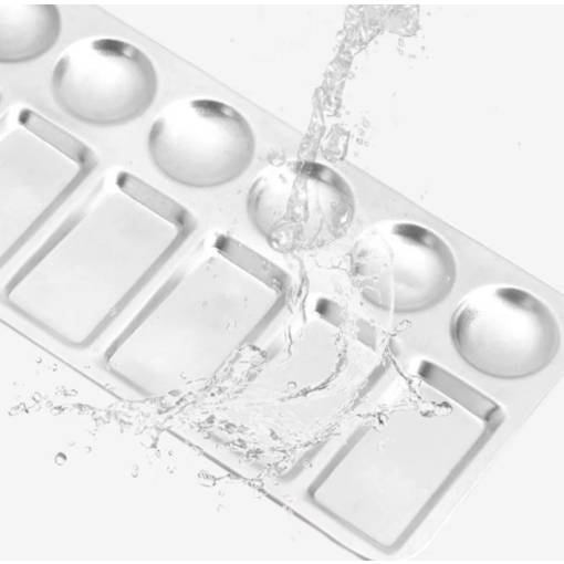A fém paletta ideális segítőtárs minden festő és kreatív számára. Magas minőségű alumíniumból készült, így tartós, könnyű és könnyen tisztítható. Alkalmas akvarellhez, temperához, akrilhez, testfestéshez, körömfestéshez vagy más kreatív projektekhez.