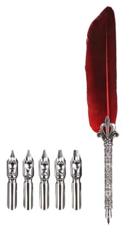 Fedezze fel a régi Európa varázsát és a kézi írás eleganciáját ezzel a luxus ajándékcsomaggal. A stílusos kalligrafikus toll valódi madártoll heggyel ötvözi a klasszikus dizájnt a minőségi fém kivitelezéssel, így nemcsak praktikus eszköz, hanem szép dísz is az íróasztalán.