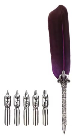 Fedezze fel a régi Európa varázsait és a kézi írás eleganciáját ezzel a luxus ajándék szettel. Stílusos kalligrafikus toll valódi madár tollal ötvözi a klasszikus dizájnt a kiváló fémszerkezettel, így nem csak praktikus eszköz, hanem gyönyörű dísze is íróasztalának.