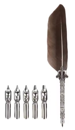 Fedezze fel a régi Európa varázsait és a kézi írás eleganciáját ezzel a luxus ajándék szettel. Stílusos kalligrafikus toll valódi madár tollal ötvözi a klasszikus dizájnt a kiváló fémszerkezettel, így nem csak praktikus eszköz, hanem gyönyörű dísze is íróasztalának.