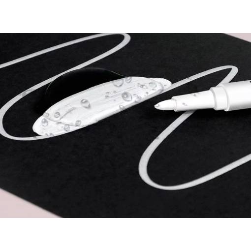 Az olaj alapú akril segítségével élénk, fedett fehér írást vagy vonalat érhetsz el sötétebb papíron vagy kartonon is. A tinta gyorsan szárad, vízálló, és kiváló kopásállóságot biztosít - ideális kreatív alkotás során, ahol arra van szükség, hogy az eredmény tartós legyen.