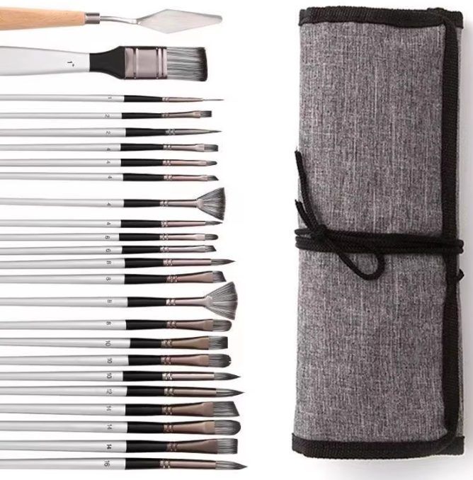 A sokoldalú művészecset készlet ideális választás festők, művészek és scrapbookok kedvelői számára, akik professzionális megjelenést szeretnének adni a projektjeiknek. Az ecsetek alkalmasak vízfestésre, akrillal és olajfestékekkel – precizitást kínálnak a részletekben és sima vonásokat biztosítanak a nagyobb felületeken.