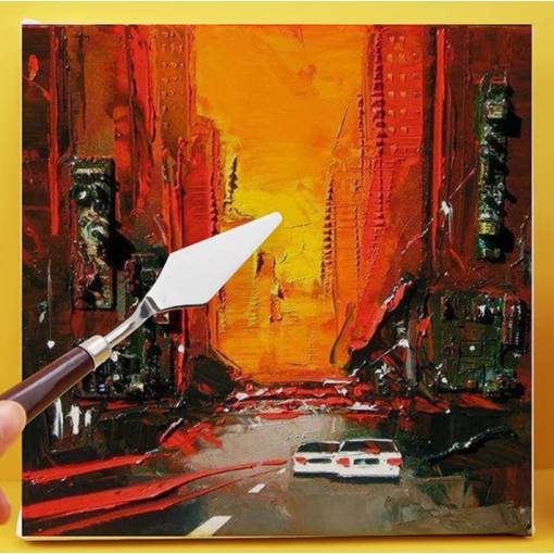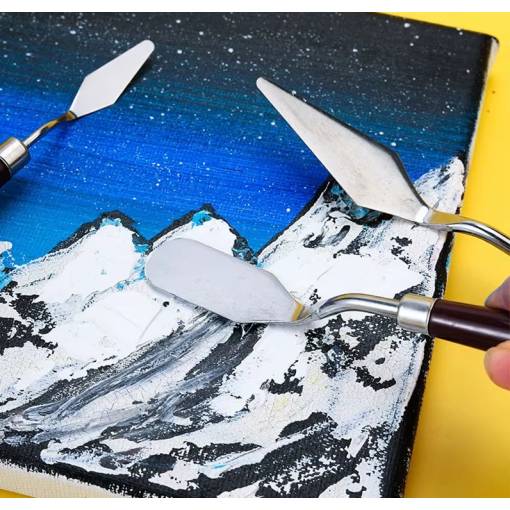 - Palettakés (palette knife) – színek keverésére a palettán és textúrázott rétegek felhordására.