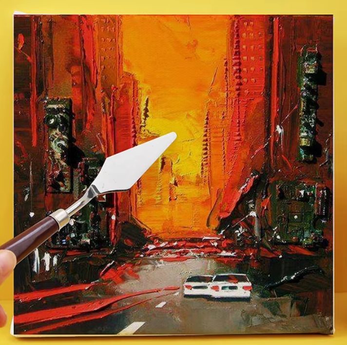- A spatulával terjessze el a festéket, hozzon létre textúrákat vagy keverje a színeket.