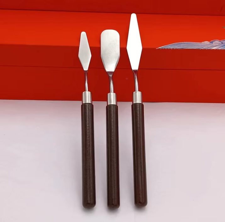 - Széles spatula (wide knife) – nagy vonalakhoz és felületek színezésére.
