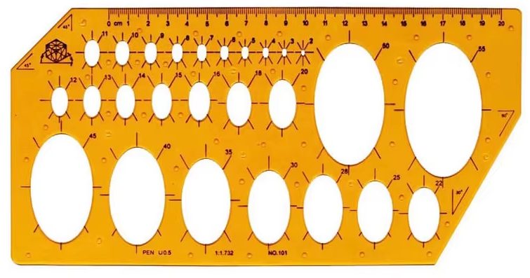 Lehetővé teszi a kör alakú és ovális formák pontos rajzolását különböző méretekben, és egyben klasszikus vonalzóként is szolgál.