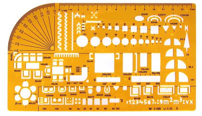 Lehetővé teszi a kör alakú és ovális formák pontos rajzolását különböző méretekben, és egyben klasszikus vonalzóként is szolgál.