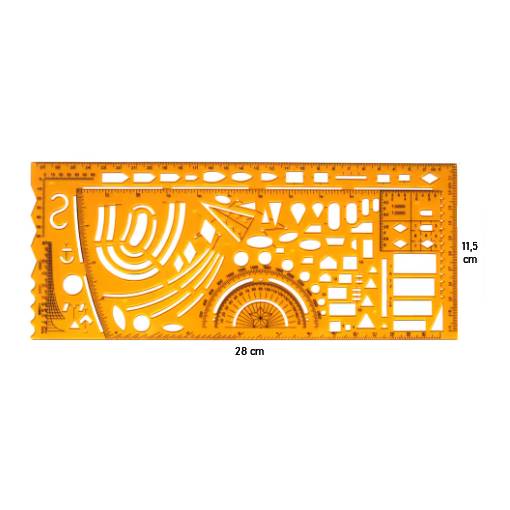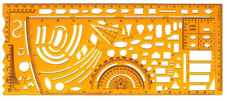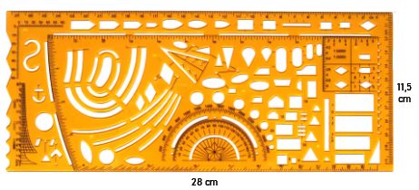 Lehetővé teszi a pontos kerek és ovális formák elhelyezését különböző méretekben, és egyben szolgál klasszikus vonalzónak is.