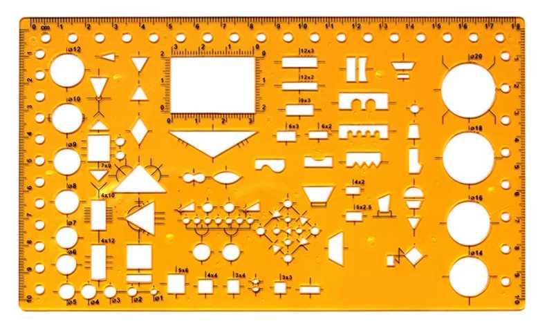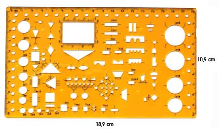 Lehetővé teszi a pontos kerek és ovális formák elhelyezését különböző méretekben, és egyben szolgál klasszikus vonalzónak is.