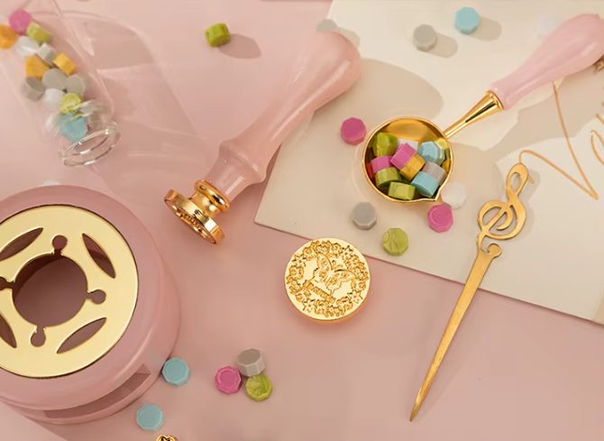 Az olvasztott viaszt papírra, borítékra vagy más felületre öntheti, és így szép pecsétet készíthet a mellékelt pecséttel. Tökéletes scrapbookozáshoz, dekoratív kézműves projektekhez, ajándékok készítéséhez vagy egyedi meghívókhoz.