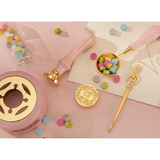 Az olvasztott viaszt papírra, borítékra vagy más felületre öntheti, és így szép pecsétet készíthet a mellékelt pecséttel. Tökéletes scrapbookozáshoz, dekoratív kézműves projektekhez, ajándékok készítéséhez vagy egyedi meghívókhoz.