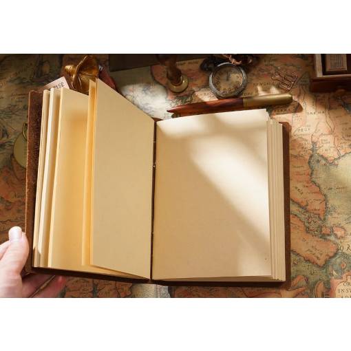 Fedezze fel a kézműves napló varázsát kiváló minőségű bőrből, amely ötvözi az elegáns retro dizájnt gyakorlati funkcióval. Ez az utazó vázlatfüzet ideális scrapbookinghoz, naplózáshoz, kreatív jegyzetekhez vagy utazásai tervezéséhez.