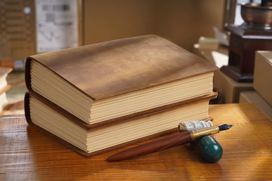 A csomag egy bőr borítóval rendelkező naplót tartalmaz.