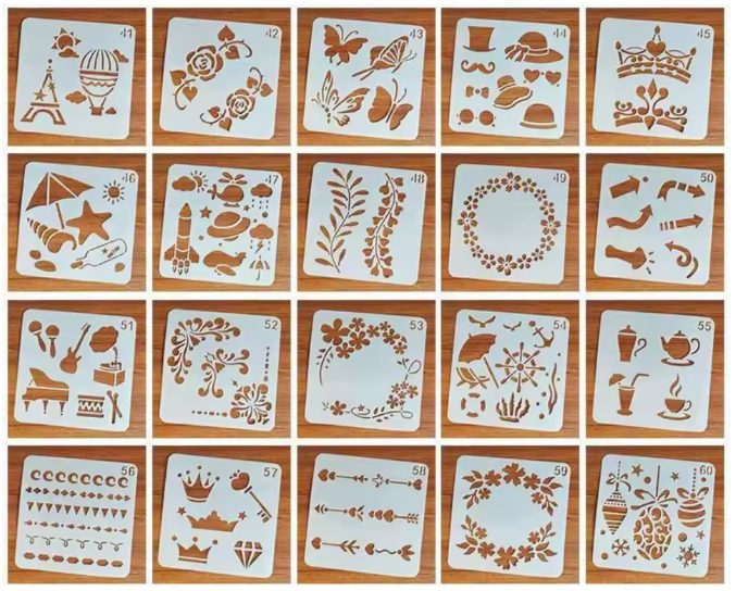 Készíts szép és precíz dekoratív motívumokat a scrapbookjaidba, naplóidba, naplókba vagy művészeti projektjeidbe ezzel a 20 sablonos készlettel.