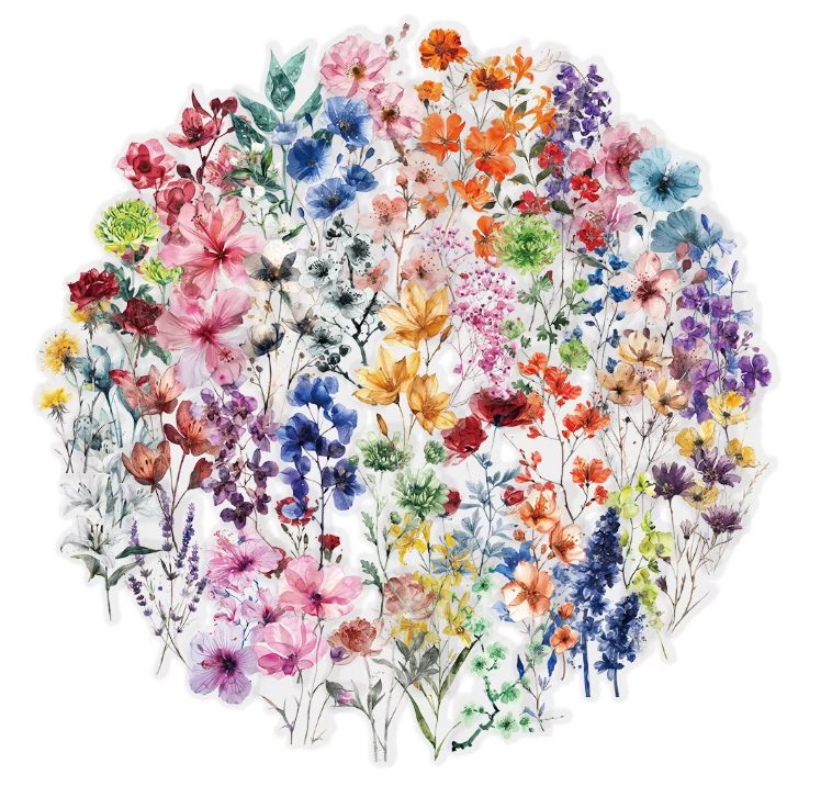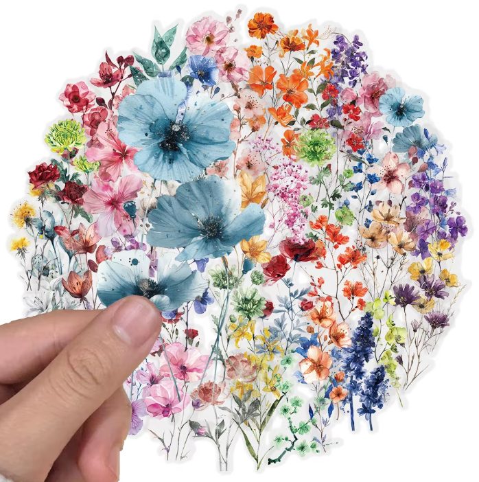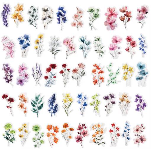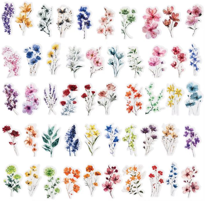 Díszítse scrapbook projektjeit gyönyörű virágos matricákkal! Ez a készlet 50 matricát tartalmaz, amelyeket magas minőségű PET anyagból készítenek, amelyek vízállóak és átlátszóak. </p>