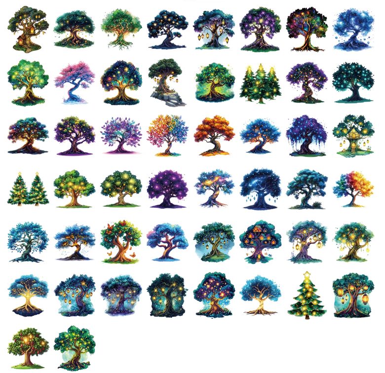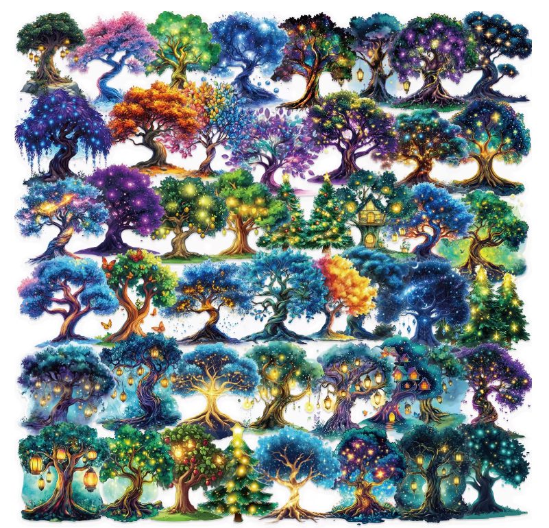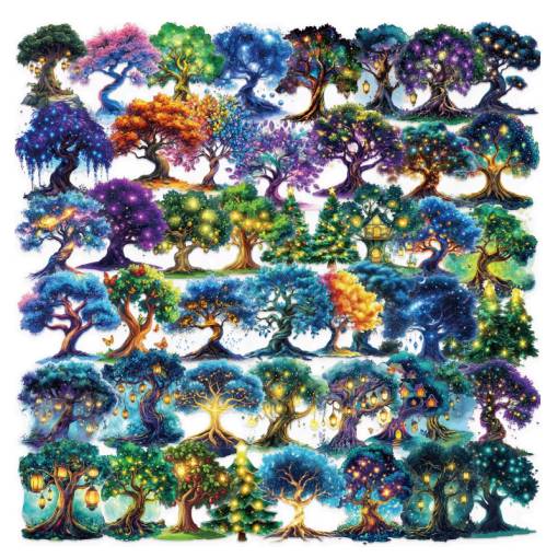 Tegyen egy csipetnyi varázslatot kreatív projektjeibe. A 50 matricából álló készlet, amely rajzolt varázslatos fákat ábrázol, finom részletekkel és mesebeli hangulattal varázsol el.</p>