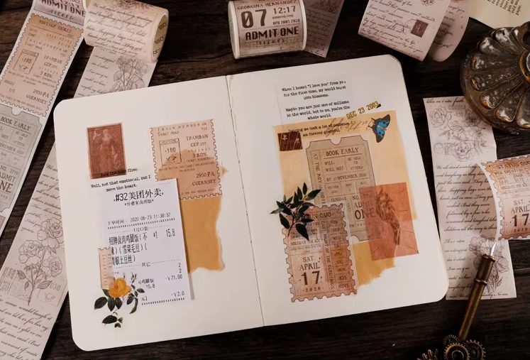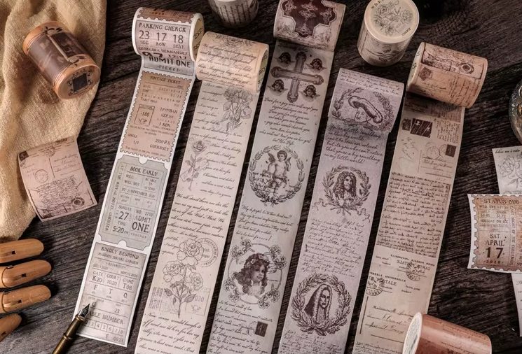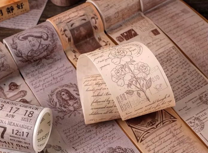 Merüljön el a nosztalgia és a kreativitás világában a dekoratív szalaggal. Ez az elegáns vintage szalag ideális kiegészítője minden naplónak, tervezőnek vagy scrapbooknak. Hozza be projektjeibe a finom retro hangulatot, és élénkítse őket egyedi módon.